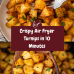 This Air Fryer Turnips recipe offers a quick and healthy way to enjoy tender, flavorful turnips with a crispy exterior. Seasoned with garlic powder, paprika, sea salt, and cracked pepper, these air-fried turnips make a perfect low-effort side dish or snack.