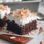 This Almond Joy Poke Cake is a rich, indulgent dessert that combines chocolate, coconut, and almonds in every bite. Its creamy coconut filling and toasted almond topping make it a crowd-pleaser for any occasion.