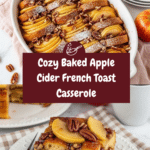 This Baked Apple Cider French Toast is a comforting, flavorful breakfast casserole featuring custard-soaked bread infused with apple cider, cinnamon, and warm spices. Topped with sautéed spiced apples and crunchy pecans, it’s baked to golden perfection and perfect for a cozy morning or brunch gathering.