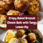 These Baked Broccoli Cheese Balls are a delicious and nutritious snack or appetizer featuring soft cooked broccoli combined with cheese, eggs, and panko breadcrumbs, then oven-baked until golden and crispy on the outside. Served with a zesty lemon yoghurt sauce, they offer a perfect balance of creamy, tangy, and savory flavors, making them a crowd-pleasing vegetarian treat.