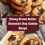 Keywords: brown butter chocolate chip cookies, chewy chocolate chip cookies, best chocolate chip cookies, brown butter baking, homemade cookies