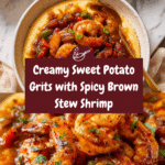 Brown Stew Shrimp with Sweet Potato Grits is a comforting dish that combines tender shrimp simmered in a spicy, flavorful sauce with creamy, cheesy grits enriched by sweet potato puree. This recipe offers a perfect balance of heat and richness, ideal for a satisfying dinner that feels both rustic and special.