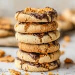 Keywords: Butterfinger cookies, peanut butter cookies, chocolate drizzle cookies, candy bar cookies, homemade cookies, chewy cookies