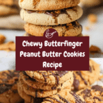 These Butterfinger Peanut Butter Cookies combine creamy peanut butter with crunchy Butterfinger candy for a perfect blend of textures and flavors. Topped with a drizzle of melted chocolate and extra candy pieces, they’re an irresistible treat for any sweet tooth.