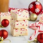 Keywords: Candy Cane Fudge, peppermint fudge, white chocolate fudge, holiday fudge, Christmas dessert, easy fudge recipe