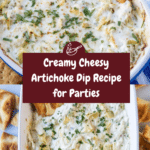 This Cheesy Artichoke Dip is a creamy, savory appetizer blending caramelized onions, marinated artichoke hearts, and a trio of cheeses for a luscious, gooey dip perfect for parties or cozy nights in.