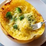 Keywords: spaghetti squash, broccoli cheddar, cheesy squash recipe, vegetarian main dish, low carb dinner, roasted spaghetti squash, healthy comfort food