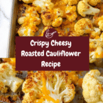 Keywords: cheesy roasted cauliflower, roasted cauliflower recipe, baked cauliflower with cheese, easy vegetable side dish, cheddar cauliflower