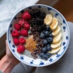 A delicious and nutritious Chia Pudding Greek Yogurt Bowl that combines creamy chia pudding soaked overnight, tangy Greek yogurt, fresh banana and berries, decadent peanut butter, semi-sweet chocolate chips, and a drizzle of honey for natural sweetness. Perfect for a healthy breakfast or satisfying snack.