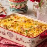 This comforting Chicken Spaghetti casserole combines tender chicken, al dente spaghetti, creamy mushroom soup, sharp cheddar cheese, and a medley of flavorful vegetables, baked to bubbling perfection. It’s a hearty, easy-to-make dish that’s perfect for family meals and can be prepared ahead and frozen for convenience.