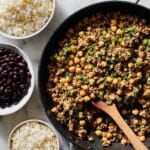 - Finish and Serve: Stir in the chopped cilantro and the green parts of the scallions just before serving to add freshness. Serve the chickpea picadillo hot over your choice of rice and beans for a filling and flavorful meal.