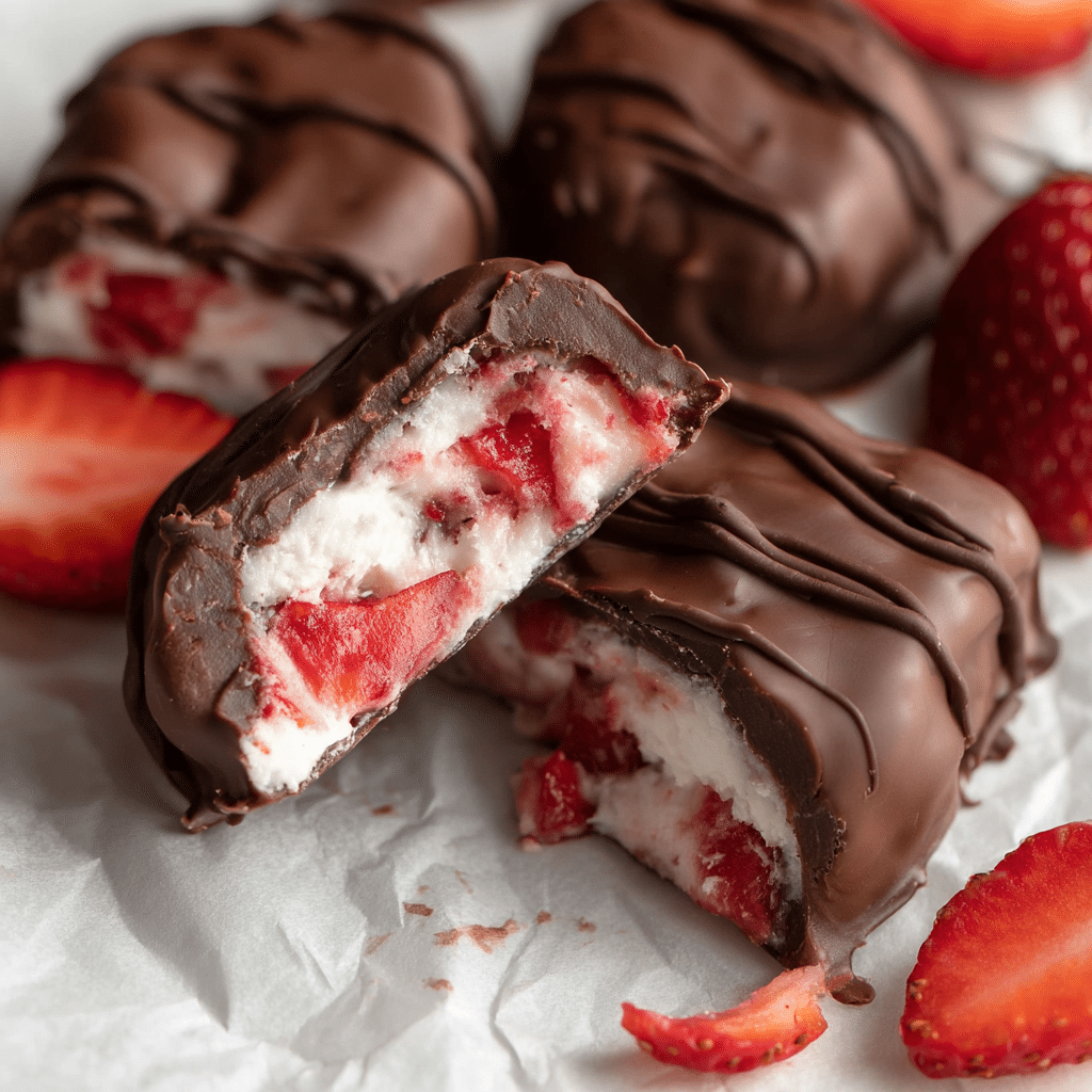 Keywords: chocolate strawberry clusters, Greek yogurt dessert, frozen yogurt bites, healthy chocolate snack, easy no-bake dessert