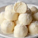 Keywords: coconut truffles, no bake dessert, white chocolate, condensed milk truffles, easy sweets, holiday treats