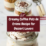 A rich and creamy coffee-flavored custard dessert, Coffee Pots de Crème combines strong espresso with velvety cream and egg yolks, baked gently in a water bath until just set. This elegant French-inspired treat is perfect for coffee lovers and is finished with whipped cream and chocolate shavings for extra indulgence.