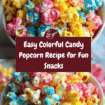 Colorful Candy Popcorn is a fun and vibrant twist on classic popcorn, perfect for parties or an easy sweet treat. With a simple sugar glaze and optional food coloring, you can customize it to match any occasion.