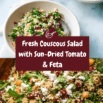 This couscous salad with sun dried tomato and feta is a fresh, flavorful dish perfect for a quick lunch or a light dinner. It combines fluffy couscous, tangy lemon, savory chickpeas, and creamy feta for a delightful Mediterranean-inspired meal.