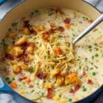 9. Serve: Ladle soup into bowls. Top with chopped crispy bacon, mini croutons, and a sprinkle of fresh parsley if desired. Enjoy warm.