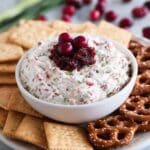 - Step 7: Transfer the dip to a serving bowl and garnish with the remaining cranberry relish and fresh cranberries if desired. Serve with crackers or baguette slices.