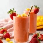 Keywords: strawberry mango smoothie, fruit smoothie, healthy smoothie, breakfast smoothie, mango juice smoothie, frozen fruit smoothie
