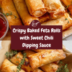 These Crispy Baked Feta Rolls feature flaky phyllo dough stuffed with a flavorful blend of feta cheese, fresh herbs, garlic, and honey. Baked to golden perfection and served with a tangy sweet chili dipping sauce, they make an irresistible appetizer or snack that’s both savory and slightly sweet.
