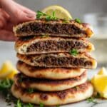 Crispy Lebanese Meat Stuffed Pita, also known as Arayes, is a delicious Middle Eastern dish featuring thin pita bread halves stuffed with a spiced lamb or beef mince mixture, pan-fried to golden perfection. Served with a creamy whipped tahini sauce, it’s perfect as a snack, appetizer, or light meal.
