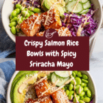 Crispy Salmon Rice Bowls combine tender, crispy salmon bites with fragrant ginger scallion rice and fresh vegetables, all topped with a spicy sriracha mayo and a flavorful homemade teriyaki sauce. This dish offers a perfect balance of textures and flavors, making it a delightful, wholesome meal that’s easy to prepare and sure to impress.