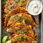 5. Serve: Transfer the crispy tacos to a platter. Serve immediately with optional sour cream, fresh cilantro leaves, and lime wedges on the side for added flavor and freshness.
