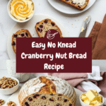 This Crusty Cranberry Nut No Knead Bread combines tart dried cranberries and crunchy nuts in a delightfully chewy loaf. With minimal effort and no kneading required, it’s perfect for home bakers seeking a flavorful, rustic bread.