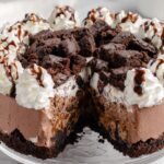 This Dairy Queen Copycat Chocolate Ice Cream Cake combines layers of chocolate ice cream, hot fudge, crunchy cookie bits, and brownie pieces topped with whipped cream and chocolate chunks. It’s a decadent, no-bake frozen dessert perfect for chocolate lovers seeking a rich and creamy treat that’s easy to assemble at home.