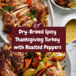 This dry-brined Thanksgiving turkey with chiles offers a flavorful twist on a classic holiday favorite. The spicy, aromatic rub and roasted mixed peppers add depth and warmth, making it a standout centerpiece for your festive meal. Perfect for cooks looking to add a bit of heat and herbaceous notes to their turkey.
