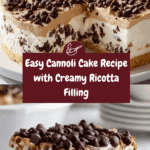 Keywords: cannoli cake, easy cannoli recipe, ricotta cake, no bake cake, chocolate ganache cake, Italian dessert, pound cake dessert