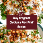 This Fragrant Chickpea Rice Pilaf is a flavorful and hearty dish combining fluffy basmati rice with spiced chickpeas, fresh herbs, and sweet sultanas. Enhanced with aromatic cumin, garam masala, and crispy fried shallots, it’s perfect as a wholesome main or a tasty side, served warm or at room temperature.