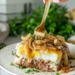 This French Onion Meatloaf recipe combines the rich flavors of caramelized sweet onions, red wine, and Worcestershire sauce with a moist, seasoned ground beef loaf topped with melting Swiss cheese. Slow-cooked to perfection, it offers a comforting twist on classic meatloaf with a luscious, savory base reminiscent of French onion soup.