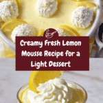 Fresh Lemon Mousse is a light, tangy dessert that beautifully balances creamy texture with zesty lemon flavor. Perfect for warm days or when you want a refreshing treat, this mousse combines smooth lemon curd with airy whipped cream for an irresistible finish.
