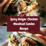 Keywords: ginger chicken meatballs, chicken sandwich, Asian-inspired sandwich, spicy meatball sando, cilantro meatballs, quick dinner, fusion sandwich