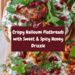This recipe for Halloumi Flatbreads with Hot Honey combines warm, homemade flatbreads topped with golden-fried halloumi cheese coated in bubbling sweet honey, complemented by a fresh, herby mint yoghurt sauce and pomegranate seeds for a burst of tartness. Perfect for a satisfying brunch or light dinner, these flatbreads offer a delightful balance of creamy, sweet, and savory flavors with a hint of spice.