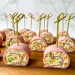 Keywords: Ham roll ups, ham rolls, cream cheese appetizer, easy party snack, no-cook appetizers