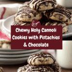 Delight in these Holy Cannoli Cookies, a mouthwatering combination of soft ricotta-infused dough, warm cinnamon, fresh orange zest, and crunchy pistachios, studded with mini chocolate chips. These cookies offer a delectable balance of creamy, nutty, and chocolaty flavors inspired by traditional cannoli filling, baked to golden perfection and finished with a drizzle of melted chocolate for an irresistible treat.