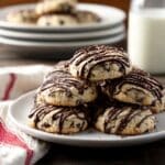 Delight in these Holy Cannoli Cookies, a mouthwatering combination of soft ricotta-infused dough, warm cinnamon, fresh orange zest, and crunchy pistachios, studded with mini chocolate chips. These cookies offer a delectable balance of creamy, nutty, and chocolaty flavors inspired by traditional cannoli filling, baked to golden perfection and finished with a drizzle of melted chocolate for an irresistible treat.