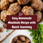 These Homemade Meatballs are a classic, flavorful blend of lean ground beef, Italian breadcrumbs, parmesan cheese, and a zesty dry ranch seasoning. Baked to perfection in the oven, they’re juicy on the inside with a slight crisp on the outside, making them perfect for serving as an appetizer or as a protein-packed addition to your favorite pasta dishes.