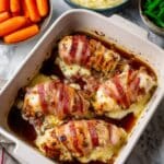 - Step 2: Wrap each chicken breast in two rashers of bacon and place them in a shallow baking dish.
