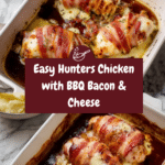 Hunters Chicken is a comforting and flavorful dish featuring tender chicken breasts wrapped in crispy bacon, topped with BBQ sauce and melted cheese. It’s an easy-to-make meal that pairs wonderfully with classic sides like mashed potatoes and vegetables.