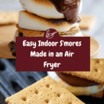 Indoor s’mores are best enjoyed fresh and warm. If needed, store leftovers in an airtight container at room temperature for up to one day. Reheat gently in the air fryer for 10-15 seconds to soften the chocolate and marshmallow again.