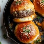 Delight your taste buds with these irresistible Garlic Parmesan Cheeseburger Bombs. Juicy seasoned beef patties wrapped in flaky biscuit dough, stuffed with melted cheddar and Parmesan cheese, baked to golden perfection. Perfect for a savory snack or an impressive appetizer for food lovers.