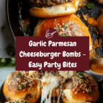 These Garlic Parmesan Cheeseburger Bombs are a tasty twist on a classic favorite. Juicy beef, flavorful cheeses, and garlic come together wrapped in soft biscuit dough for an irresistible snack or meal.