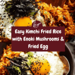 Keywords: Kimchi fried rice, Korean recipe, spicy rice, gochujang, enoki mushrooms, fried egg, easy dinner