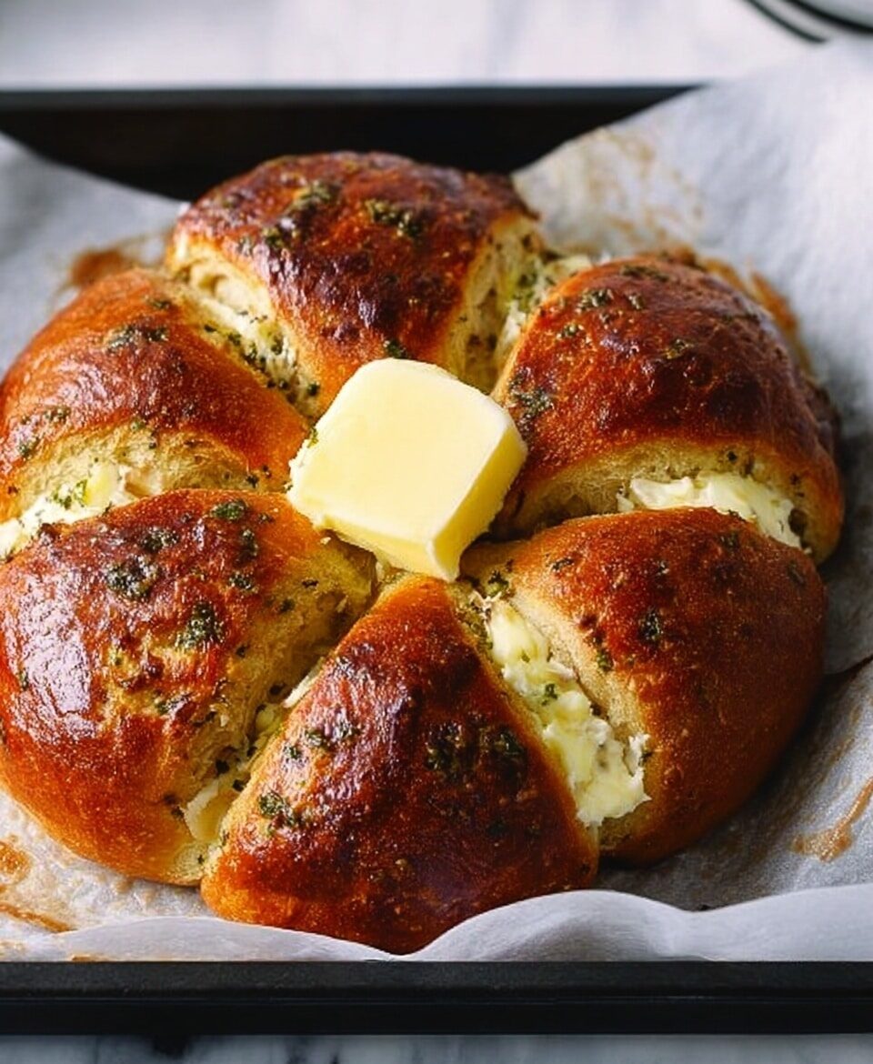 Keywords: Korean cream cheese garlic bread, brioche garlic bread, sweet garlic bread, Korean snack, creamy garlic bread