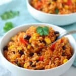 Keywords: Mexican fried rice, enchilada sauce rice, black beans rice, bell pepper rice, quick Mexican dinner, easy stovetop rice