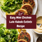 Mini Kabob’s Chicken Lule Cutlets are flavorful, tender oval-shaped chicken patties made from ground chicken thighs, garlic, and onion, seasoned simply with salt and white pepper. These cutlets are pan-seared in butter to achieve a golden crust and served with a variety of Middle Eastern inspired sides like roasted jalapeños, hummus, and sumac-marinated onions for a delicious and satisfying meal.