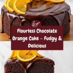Keywords: flourless chocolate cake, chocolate orange cake, gluten free dessert, fudgy cake, almond flour cake, Nigella Lawson cake, chocolate ganache cake
